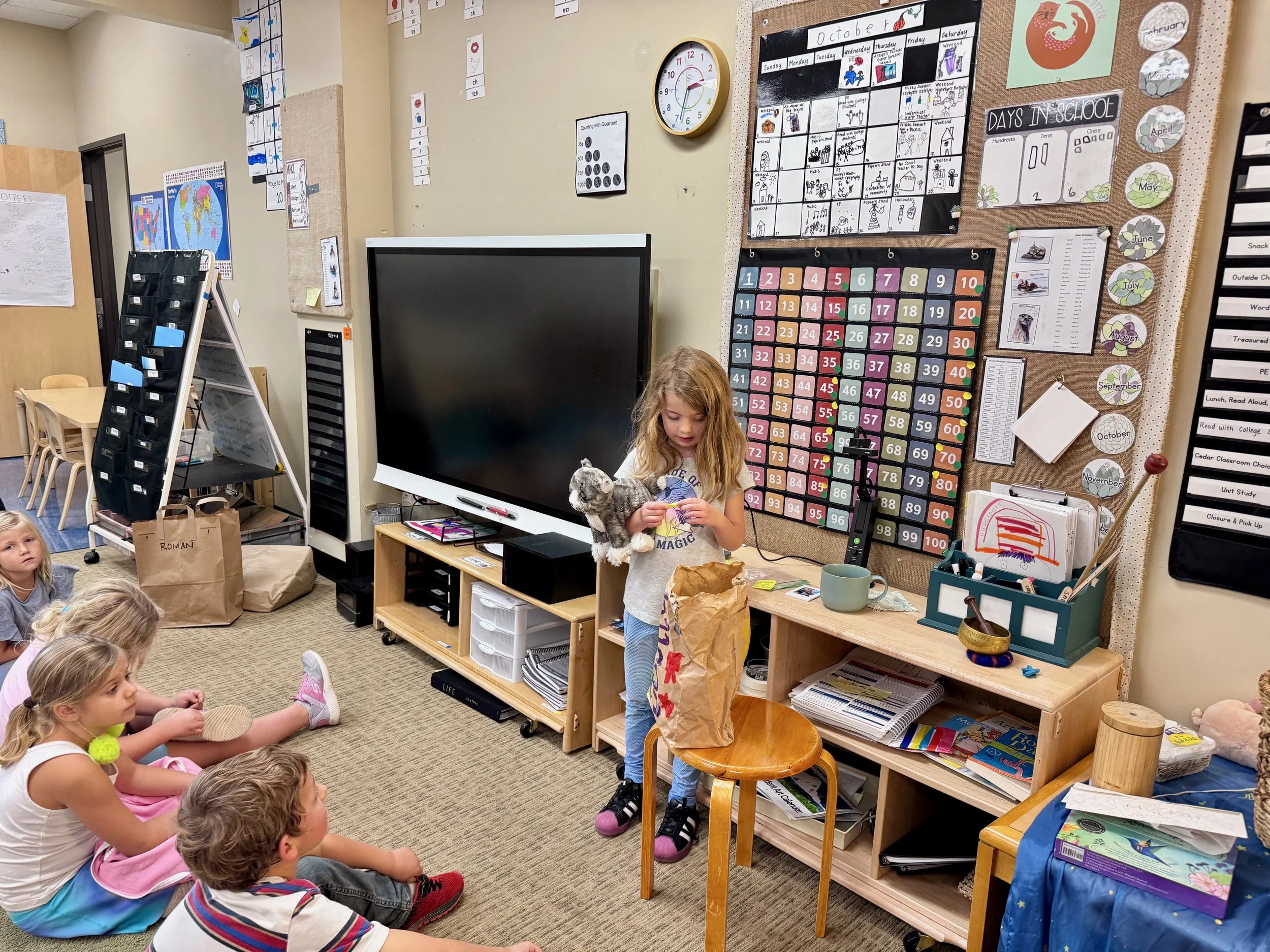 Students also continued sharing their All About Me bags, learning more about one another and finding connections with classmates. On Tuesday, we visited our Otter Popcorn Stand, where students practiced counting change—a fun and tasty way to build real-world math skills!