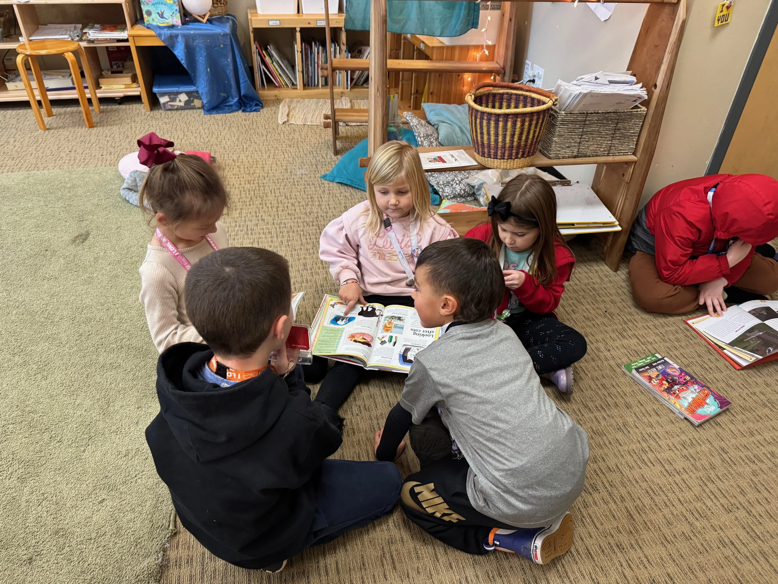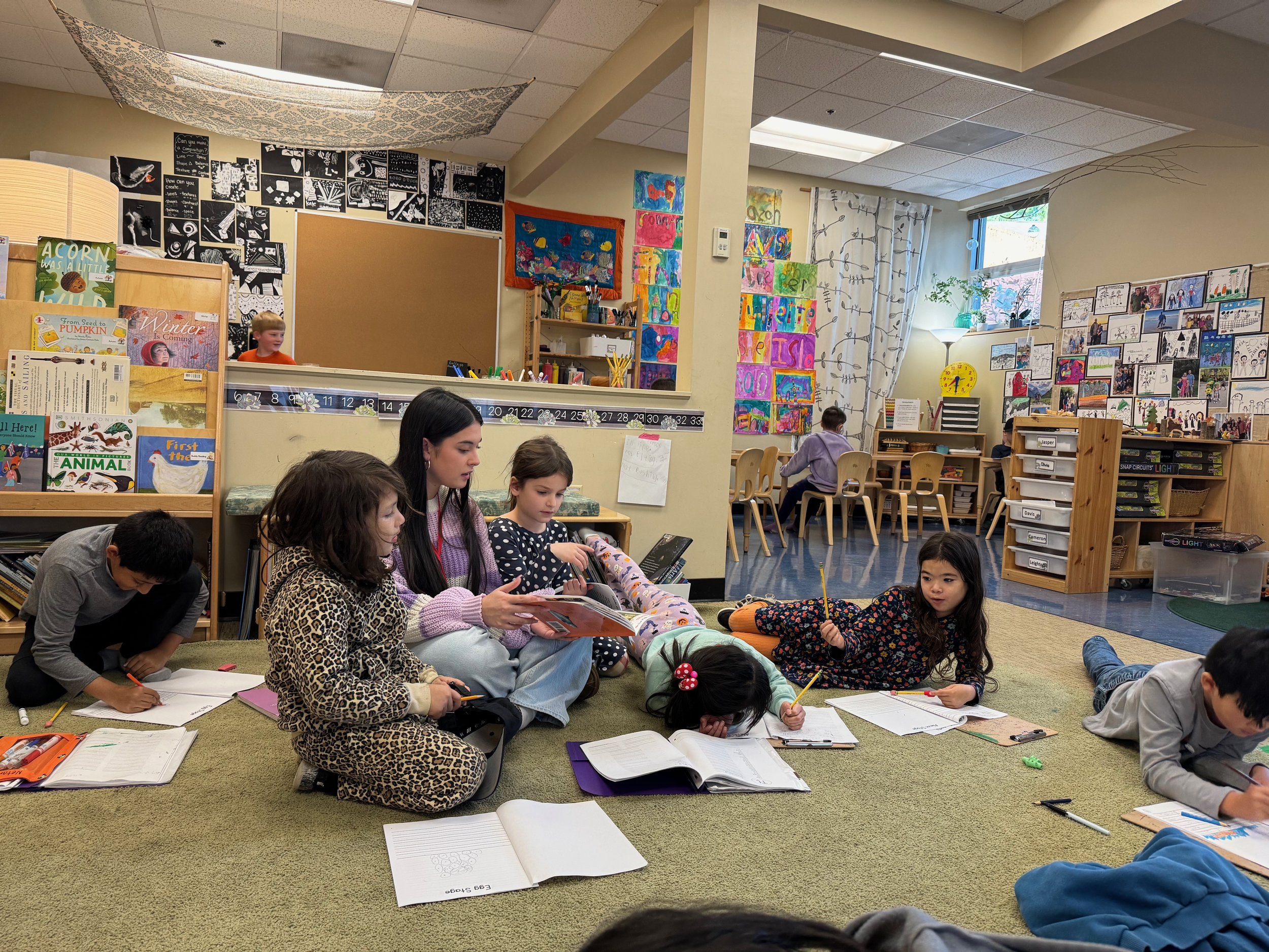 All of our salmon have now hatched, and we check on them each day. Their transformation has been incredible to witness. Ms. Robin visited to read Swimmy, a classic story that highlights teamwork and cooperation.