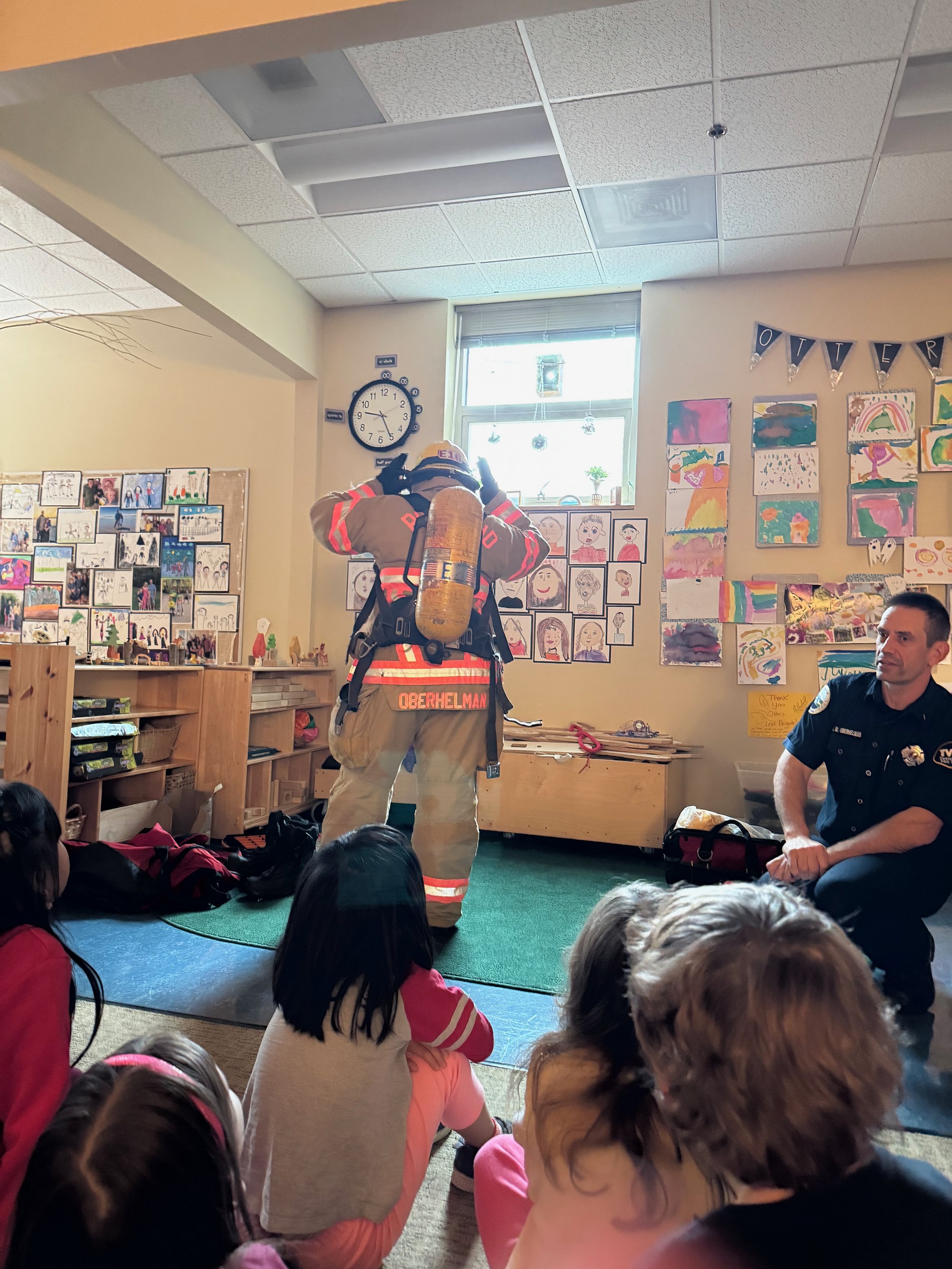 Our canned food drive continued, and students stayed committed to collecting, tallying, and recording donations to support our community. Katelyn’s parents, Ms. Emily and Mr. Matt, joined us to teach about fire safety and how firefighters support our community. They encouraged families to talk together about their home fire safety plans—an important reminder for everyone.