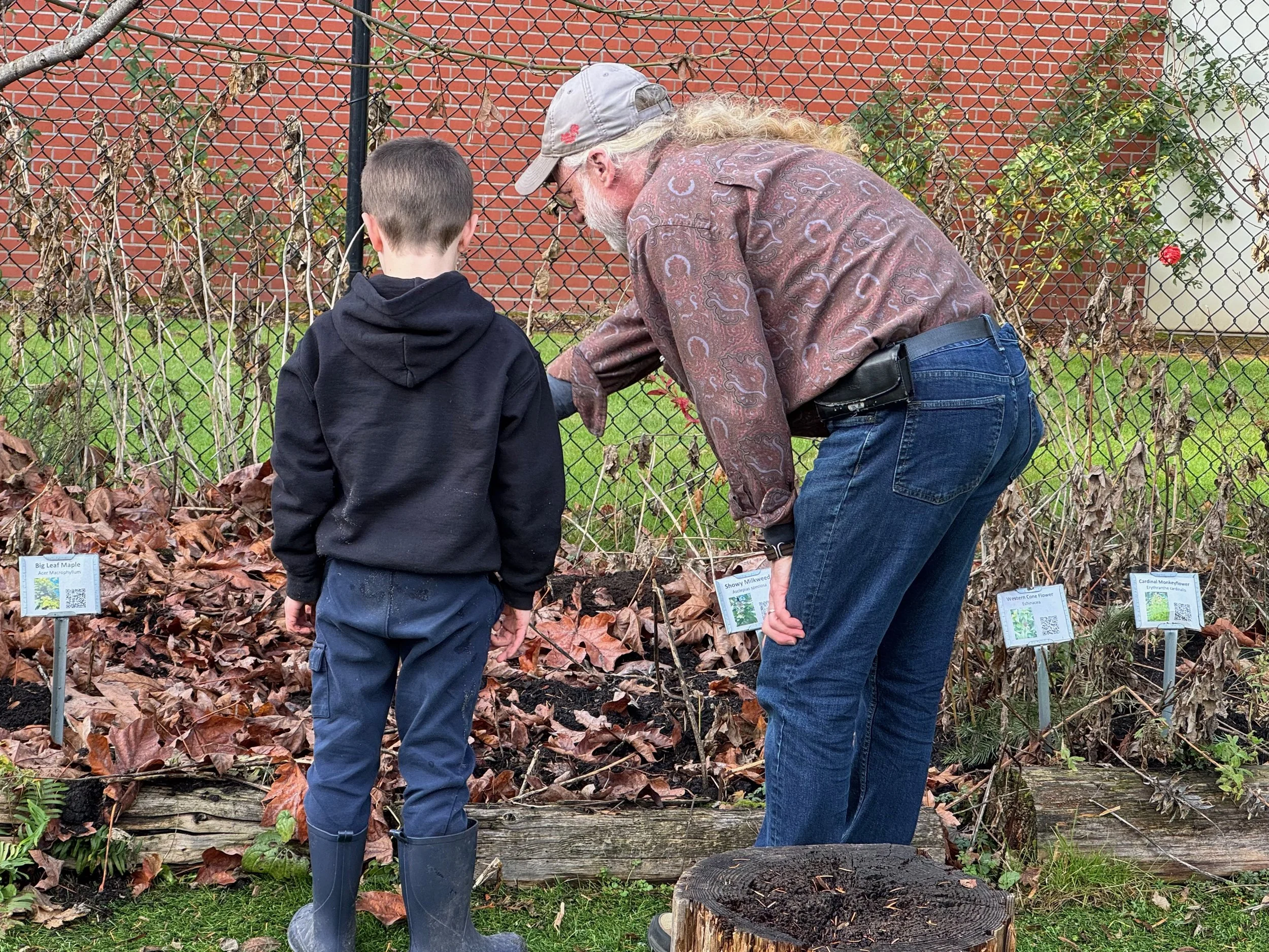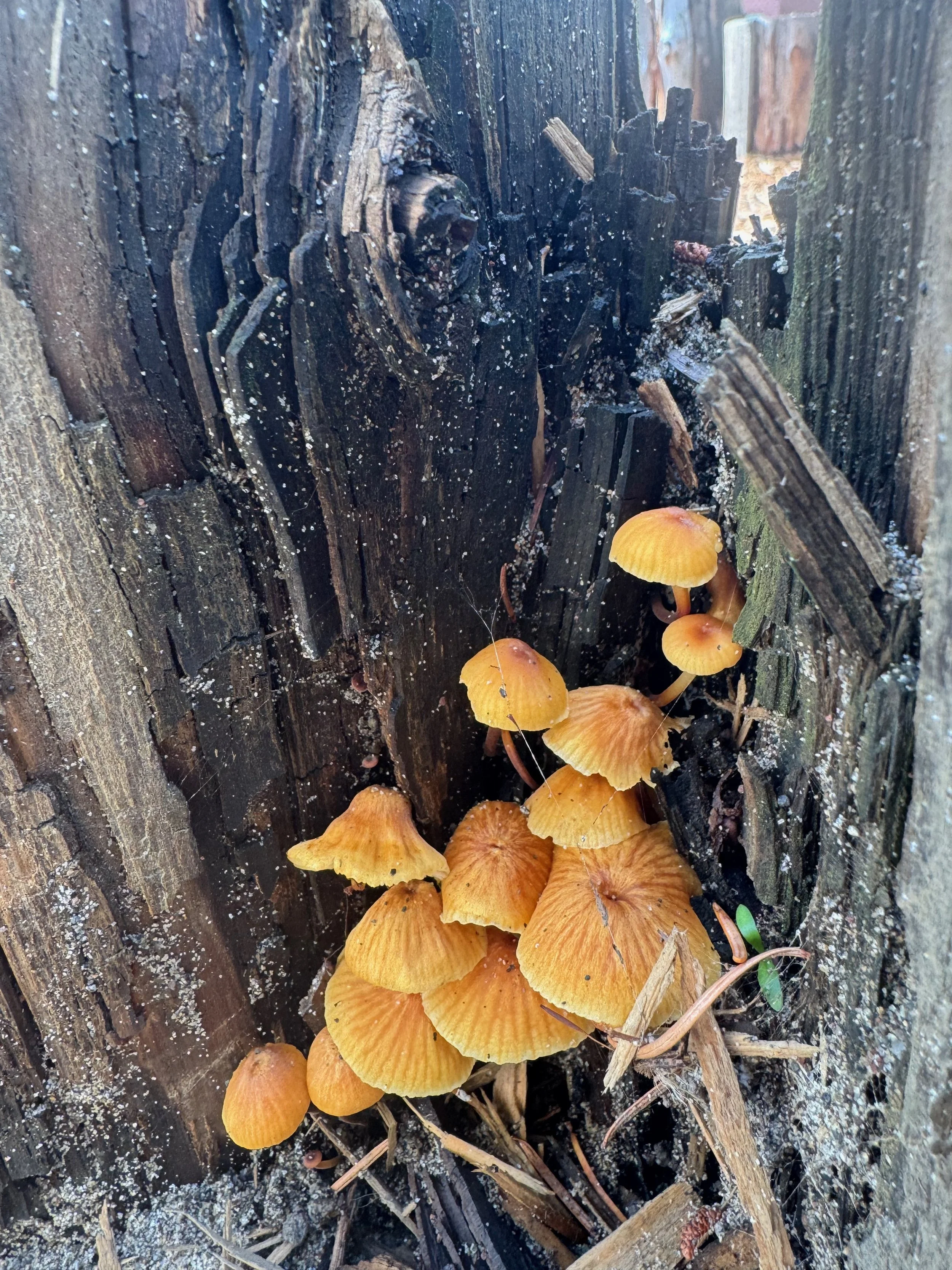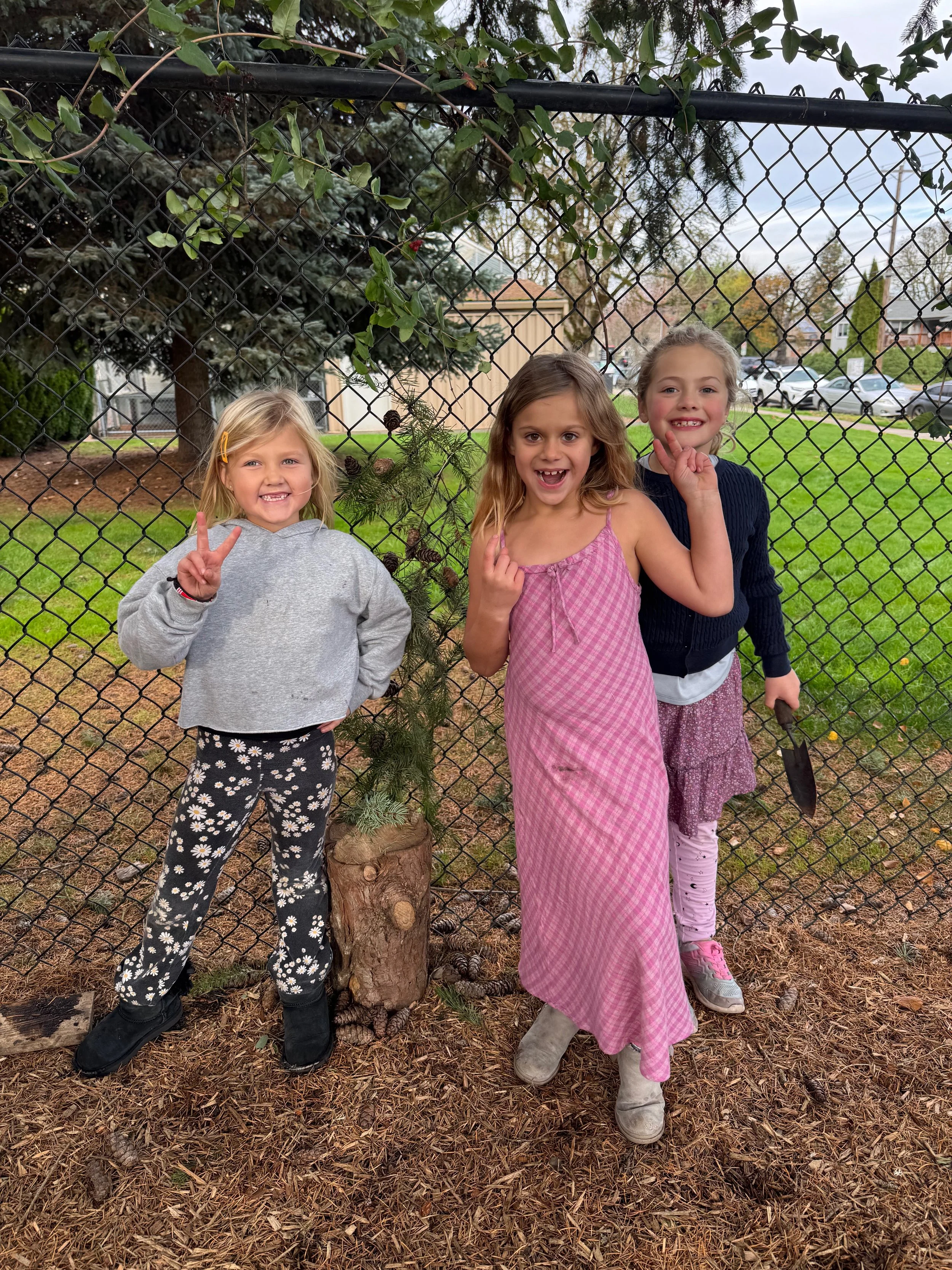 In our outdoor classroom, we spotted the bunny who has made its home in our meadow. Students also found signs of its daily activity, including fresh piles of droppings, which sparked lots of curiosity and conversation. We also discovered some beautiful fungi growing on a stump and a small group of students used fallen branches to fashion a makeshift tree on our fence.