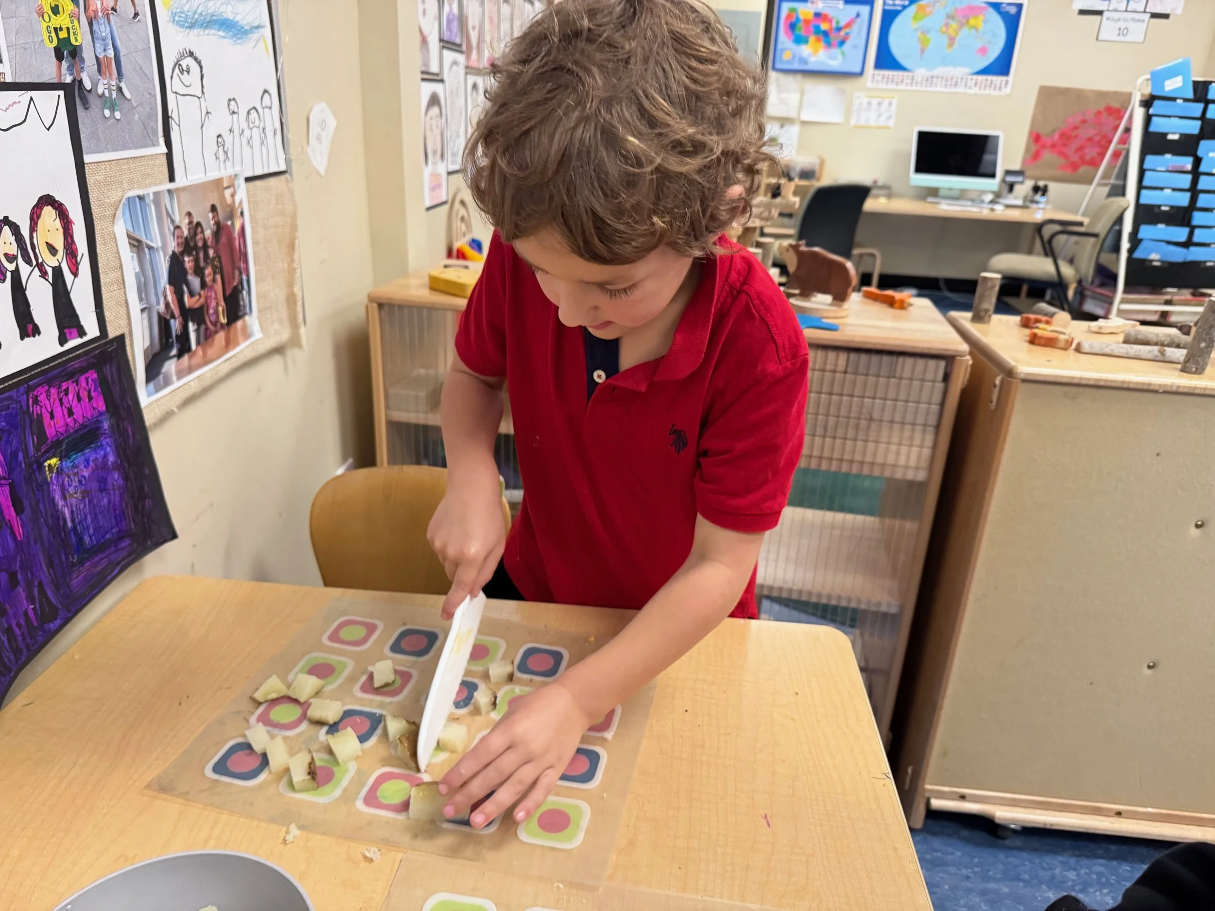 On Friday, we ended the week with one of our favorite ELC traditions: making Stone Soup. Each child brought an ingredient to share, and together we chopped vegetables and herbs to make a delicious communal pot of soup. Mr. Mark read us his favorite version of the story before we enjoyed our feast. It was a beautiful celebration of community. A huge thank you to all the parent volunteers who made Friday’s feast possible!